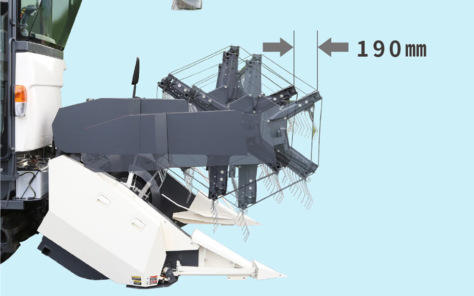 刈り終わりに「クイックアップ」を使用すれば簡単にプラットホームとリール隙間を自動調節。稈こぼれを防止します。
