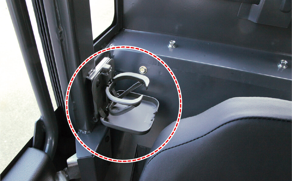 広々前方視界と充実装備で、ストレスの少ない快適な作業環境。