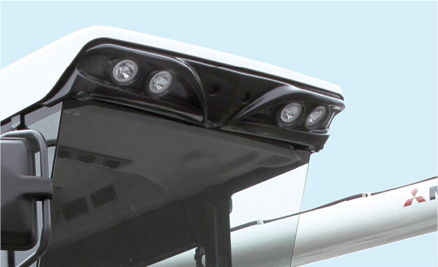 デバイダ先端や刈刃上面、オーガ先端を明るく照らす作業灯を装備。またキャビン上方の4灯の作業灯が機体前方を明るく照らし、夜間時の安全作業をサポートします。