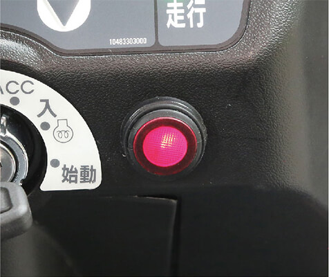 クラッチを踏んでPTOレバーをニュートラルにする必要がなく、ボタン一つでPTOの動力の「入・切」が簡単にできるPTOボタンを装備しました。作業が終われば、ボタンを押してPTO停止。