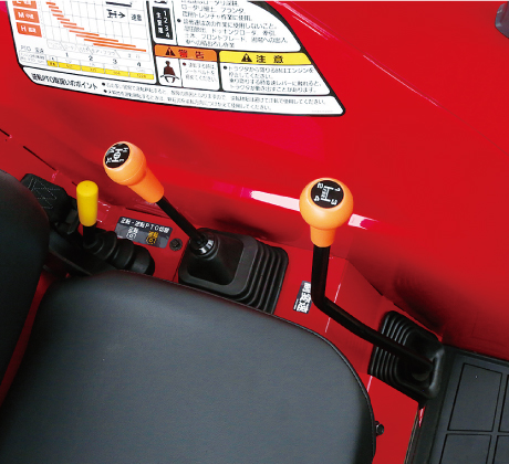 前後進の切替の際、クラッチを踏み込む必要がありません。操作は電気式のレバーなので、軽い力で前後進の切替ができます。