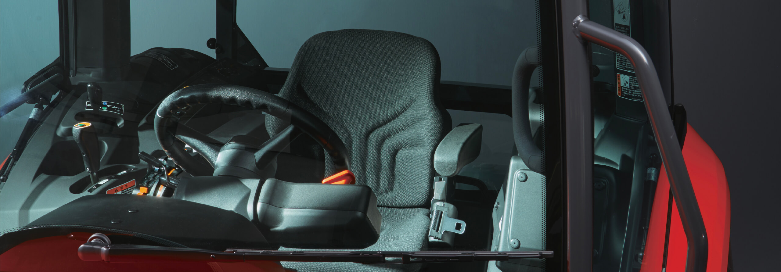 クッション性の高いエアーサスペンションシートで、長時間作業の疲労を軽減します。