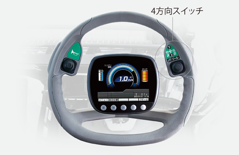 操作回数の多いスイッチ類を、主変速レバーに集中配置。レバーから手を放さず軽い力で操作できます。