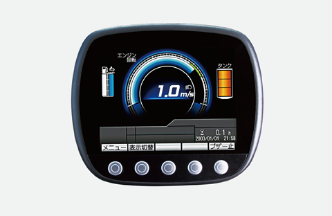 太陽光の下や暗がりでも見やすい、カラーの液晶ディスプレイに各種情報を表示します。注意項目も、ゲージ量と色の変化で表示するので、ひと目でわかります。