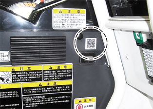 機体に貼付のQRコードをスマートフォン等で読み取ると、各種メンテナンス情報を携帯で確認できます。