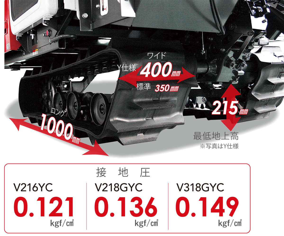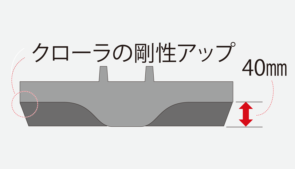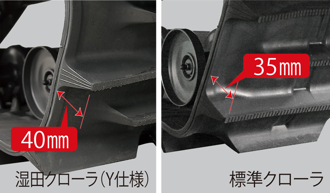 湿田クローラ(Y仕様)は皿型ハイラグクローラを採用。またクローラの芯金周辺部が厚くなっています。
