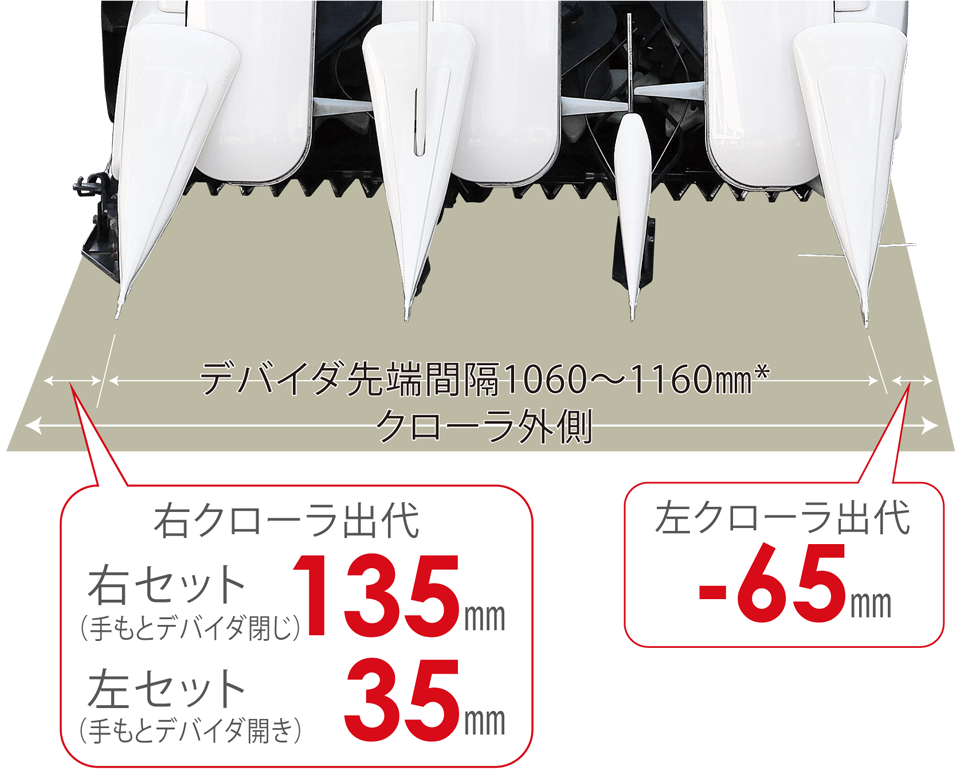 *写真は手もとデバイダを広げた状態(4条刈幅)です。