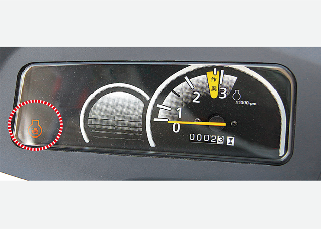 刈取作業時のエンジン回転が低下すると、モニタの点滅とホーンでオペレータにお知らせします。