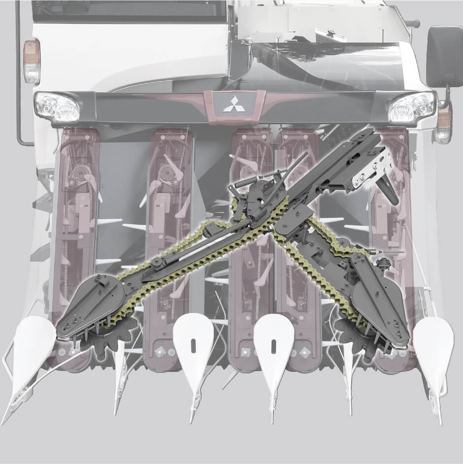 こぎ深さチェンと排ワラチェンにブッシュチェンを採用。
