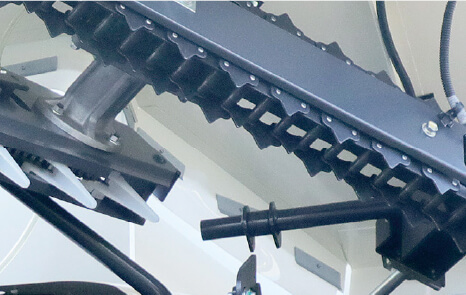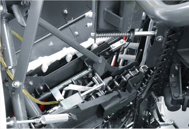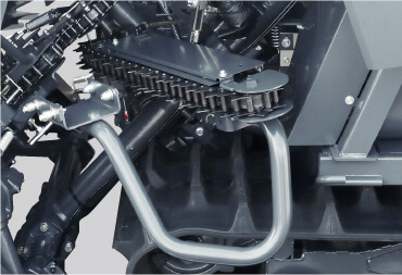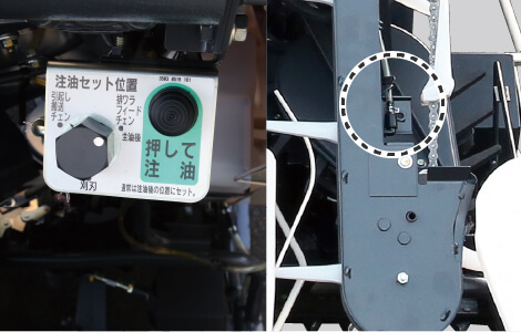 ボタンを押すだけで各部に注油。 引起しチェンはくずの堆積に影響を受けにくい注油位置となっています。