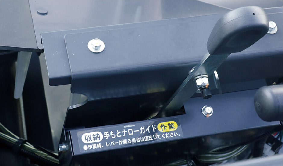 機械から降りることなく、左側ナローガイドの出し入れができます。