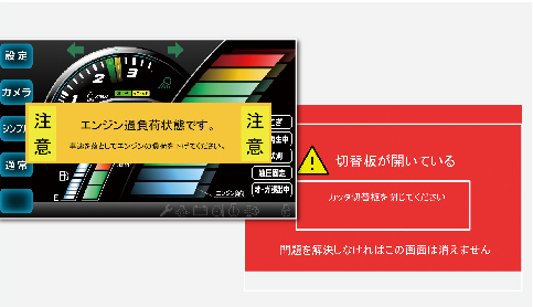 万が一のトラブル時、注意や警告を画面上でお知らせし、作業のロスを最小限に抑えます。