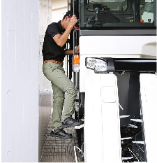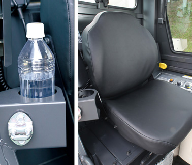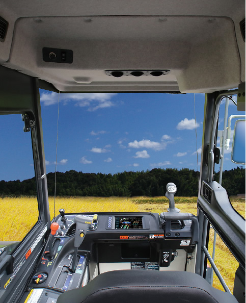 ワイドな視認性に優れたキャビン。大型作業灯標準装備で、夕暮れ時の作業性もぐんとアップしました。