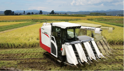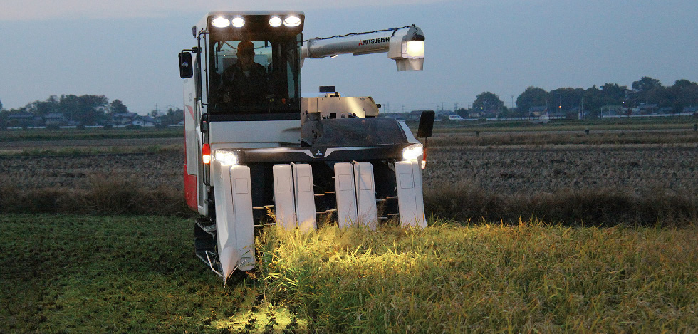 刈取部上部左右に前照灯/ 作業灯一体・大型ライトを配置。9 つの作業灯(キャビンなしは5 つ)で夜間での作業性が向上しました。