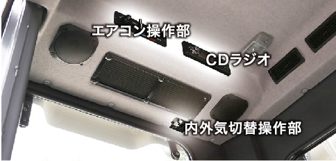 内外気切替エアコン装備し作業環境が向上しました。FM/AMラジオ付きCDプレイヤーを装備し、快適に作業をサポートします。