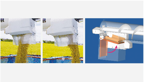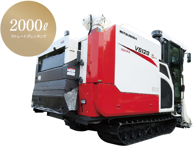 2000Lの大容量グレンタンクで排出回数を抑え、さらに約90秒の高速排出が作業効率を向上させます。また、張り出しのないストレートなタンク形状で、余裕のあるあぜ際刈ができます。