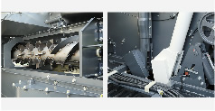 脱こく部のレバーを操作するだけで1番・2番ラセンの底板が簡単にオープンします。
