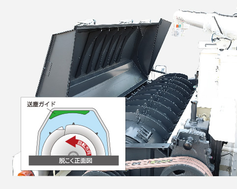 送塵ガイド周辺に、脱こくに最適な「空間」を設けることで、脱こく性能の向上と詰まりを防止。