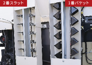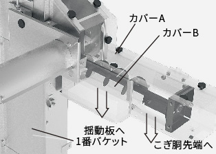 収穫物の揚こくにはバケットコンベア・スラットコンベアを採用。傷みやすい大豆など、やさしく確実に搬送できます。