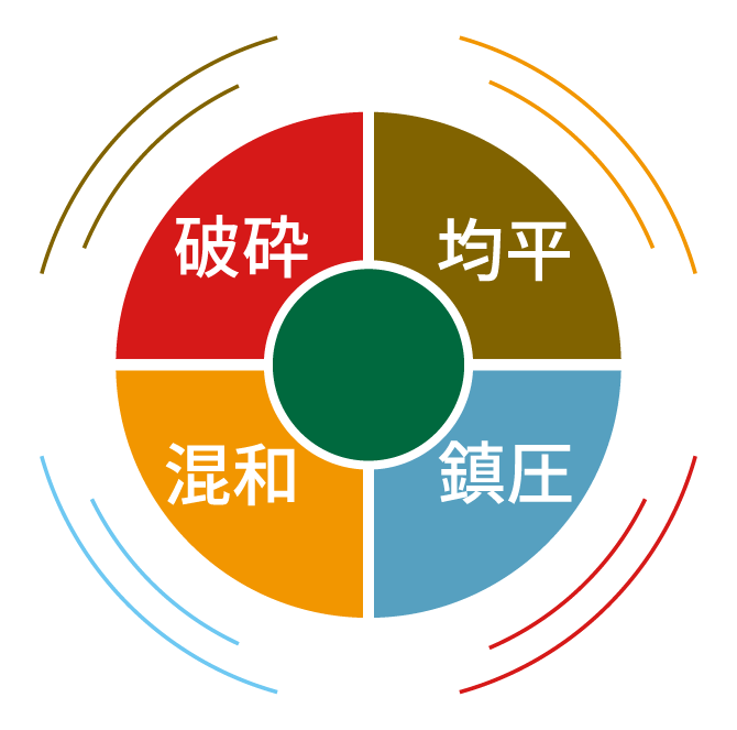 正逆配置されたスパイクローラを本体後部に2本配置。主に、前列が破砕と均平、後列が混和と鎮圧を行います。また、ローラには土塊やゴミが溜まりにくく作業後のメンテナンスが楽になります。