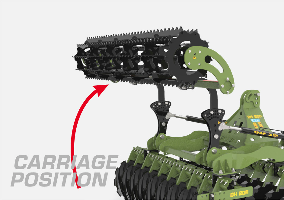 後方のトゥースローラは油圧で折りたたみが可能。