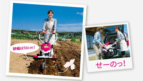 使いやすいのにパワフルだから、楽しく気持ちよく耕せます。さらにアタッチメントをつければ作業もグンと広がります。