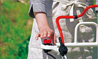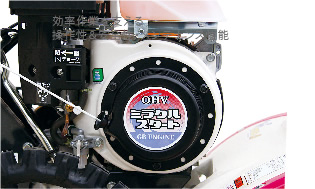 ハンドル手元のリコイルロープを軽く引っ張ればエンジン始動OK。楽な姿勢で、簡単にスタートできます。(ミラクルスタート 標準装備)