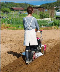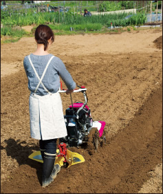 野菜づくりに欠かせないうね立て作業も、ミニ耕うん機+アタッチメントなら簡単、きれいにできます。