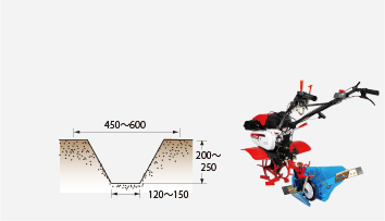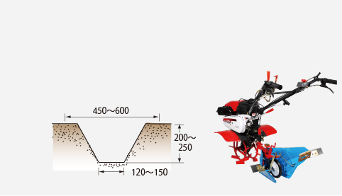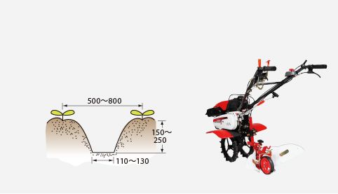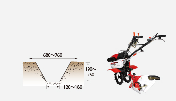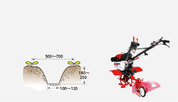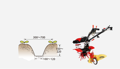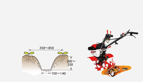 畑の中耕管理から簡易うね立てまで作業の範囲が広がります。