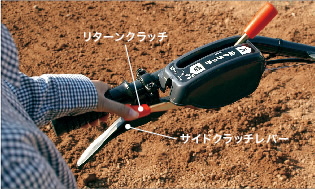 ハンドルから手を離さずにクラッチのON/OFF操作ができる、リターンクラッチを採用。またサイドクラッチレバーは操作荷重が軽く、ラクに操作できます。