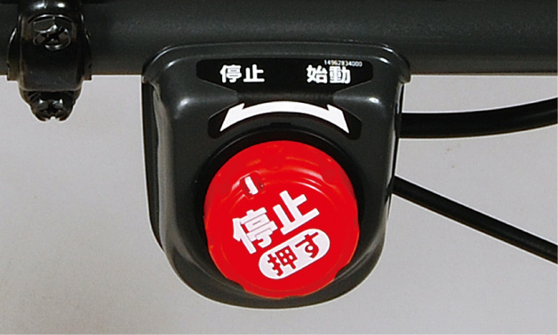 ボタン式のエンジン停止スイッチで、緊急時も素早く停止できます。