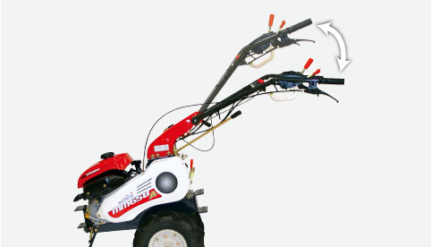 作業内容や使う方の身長に合わせ、レバーを握るだけで簡単にハンドルの高さを3段階に調整できます。(MM458BSは菊座式調節)