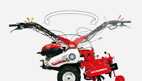 ハンドルの向きは、レバーワンタッチで簡単に変更できます。またサイドクラッチの左右も自動的に反転できます。