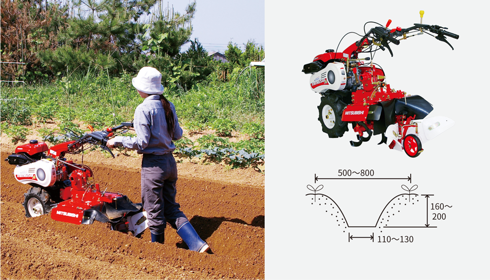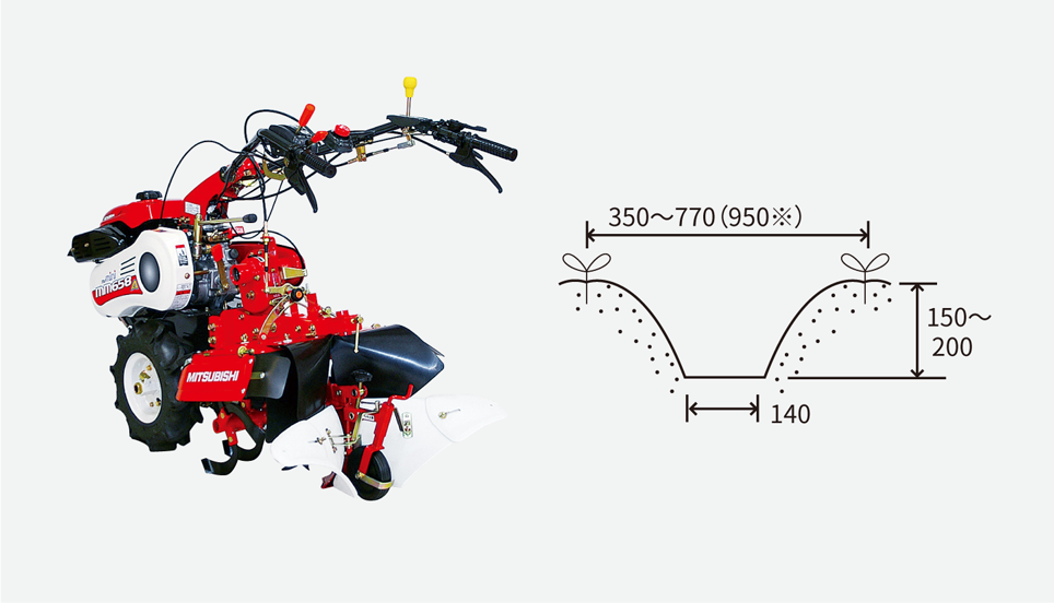 ※けん引タイプの培土器・溝浚器には、別途ユニバーサルヒッチ95型(コードNo.:31114 40080)が必要です。