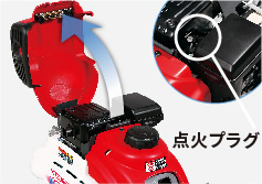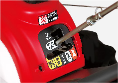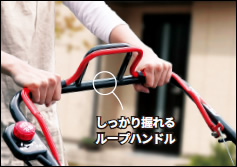ハンドル手元のリコイルロープを軽く引っ張ればエンジン始動OK。楽な姿勢で簡単にスタートできます。(ミラクルスタート※2標準装備)またエンジンストップはボタンを押すだけで簡単にできるので安心です。