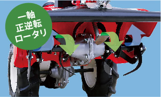 外側と内側の爪が逆転する一軸正逆転ロータリで、しっかり耕うん。