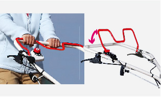 体格や作業条件に合わせて、ワンタッチでハンドル高さを4段階に切替可能。操作はレバーで簡単にできます。