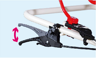 レバーを握ればデフロックになり、握った状態でロックされます。旋回時には、もう一度握れば解除できます。