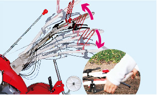 握れば耕うん、離せば停止のデッドマンクラッチレバーで、操作が簡単です。
