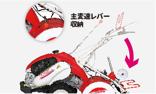 ハンドルを折りたため主変速レバーもワンタッチで脱着できるので、屋内でもすっきり収納できます。