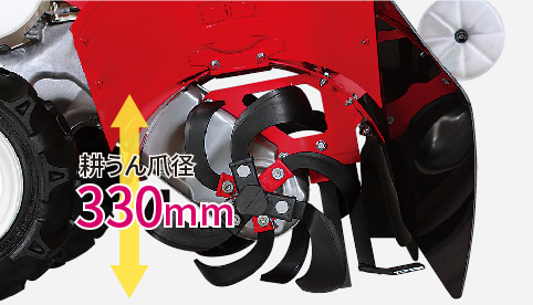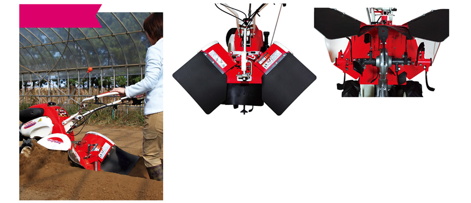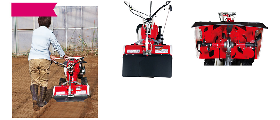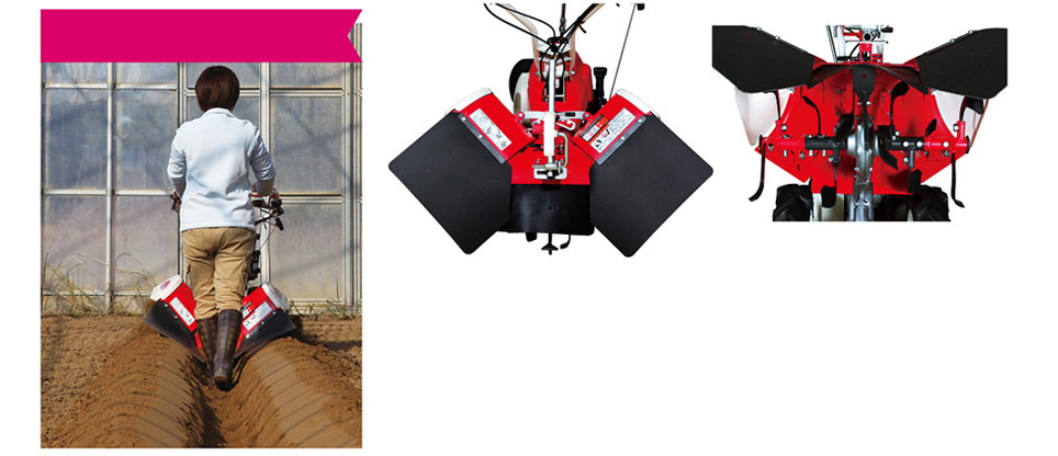 用途に応じて耕幅が選べます。土をはね上げることで、うね立てができます。