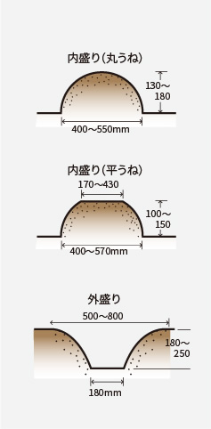ジャガイモ・コンニャク・サツマイモ・野菜全般/丸みのあるかまぼこ型うね