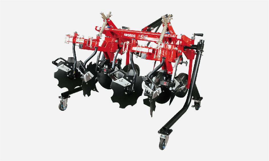 ディスク式でスピーディに作業ができます。また湿った土壌での作業も可能です。ディスク角度や位置を調整することで、生育状況に合わせた培土ができます。