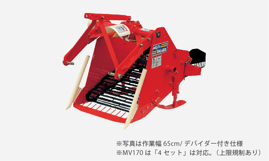 種類が多いため、選択に当たっては販売先へご相談ください。馬鈴薯 甘藷 こんにゃく芋 サトイモ 短根ニンジン※適応作物は一例です。地域によって作業体系が異なる場合があり、記載してあっても適応しない場合があります。