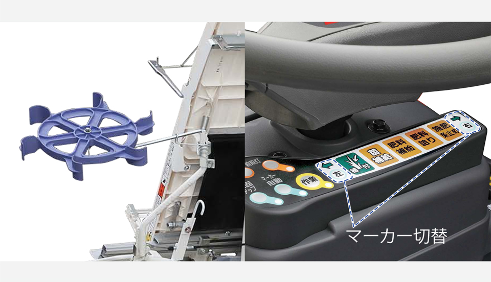 (植付部が下降した状態ではマーカーの左右切替はできません。)