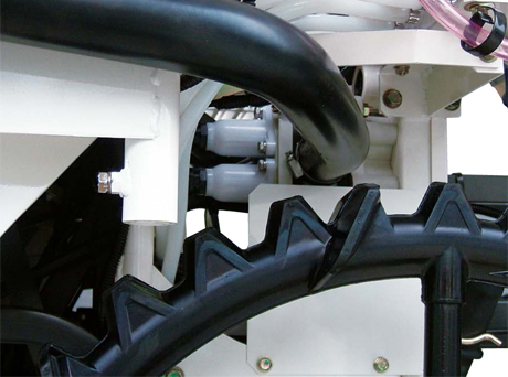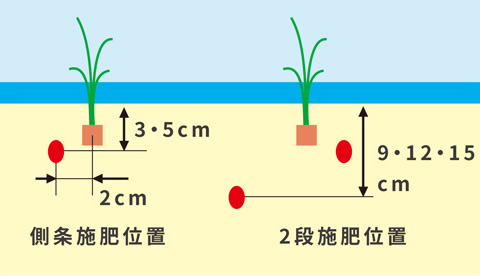 「ペースト施肥システム(側条施肥体系)」は精度の高い施肥位置・施肥量で、効果的な施肥作業ができます。 ノズルによる局所施肥のため、肥料の流亡が少なく、高精度に行なえます。 さらに効果的に省力化できる2段ペースト施肥機も別売オプションで用意しています。