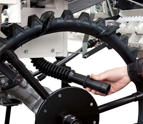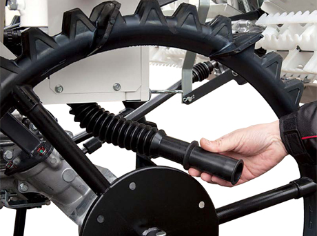 レバー1本でまくらっこの駆動「入・切」と作業高さの調節が同時に行えるので、クラッチの入れ忘れによるトラブルを未然に防止します。