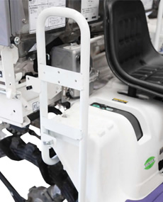運転席サイドのサポートフレームで、楽に乗降できます。苗継ぎの際には支えとしても利用できます。