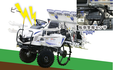 ほ場の出入りや道路で、機体が左右に大きく傾くと、警報ブザーでお知らせします。