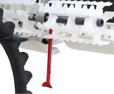 「機体前おさえ」「ハンドルロック」「クラッチ入切」「4輪ブレーキ」の4つの操作をハンドルレバー1本に集約。機械から降りて操作できるので、 ほ場の出入りが安全に行えます。ハンドルは放せば止まる安全設計です。